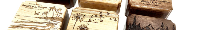 Since only select songs are available in the traditional wind up song components, a few years ago we created an electronic music box to accomidate customers who requested song that were not available in the mechanical component. Our electronic music boxes give you the same wood options and designs as our traditional music boxes, but instead of a traditional wind up song component, they come with a small electronic audio component. We can save up to 2MB (approximtely 2.5 min) into the music box. It is controled by a small light sensor, so when the music box opens the audio plays and when closed the audio stops. The component comes with a rechargable battery and also has volume control and and ON/OFF switch. These are the perfect gift if you are looking for a particular song. But these music boxes can also play personal audio. Record your own message or song to add to this music box to give it that extra personalized touch!