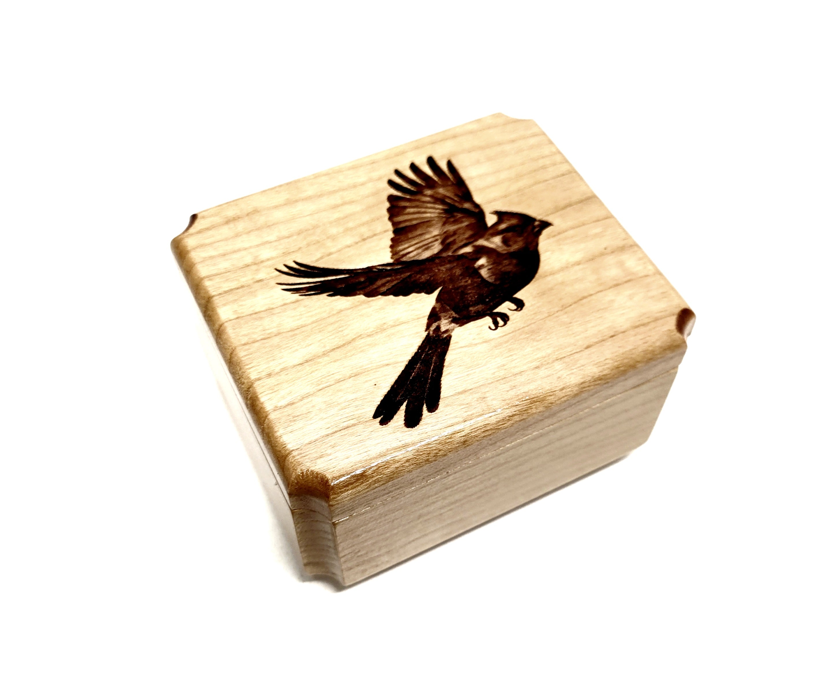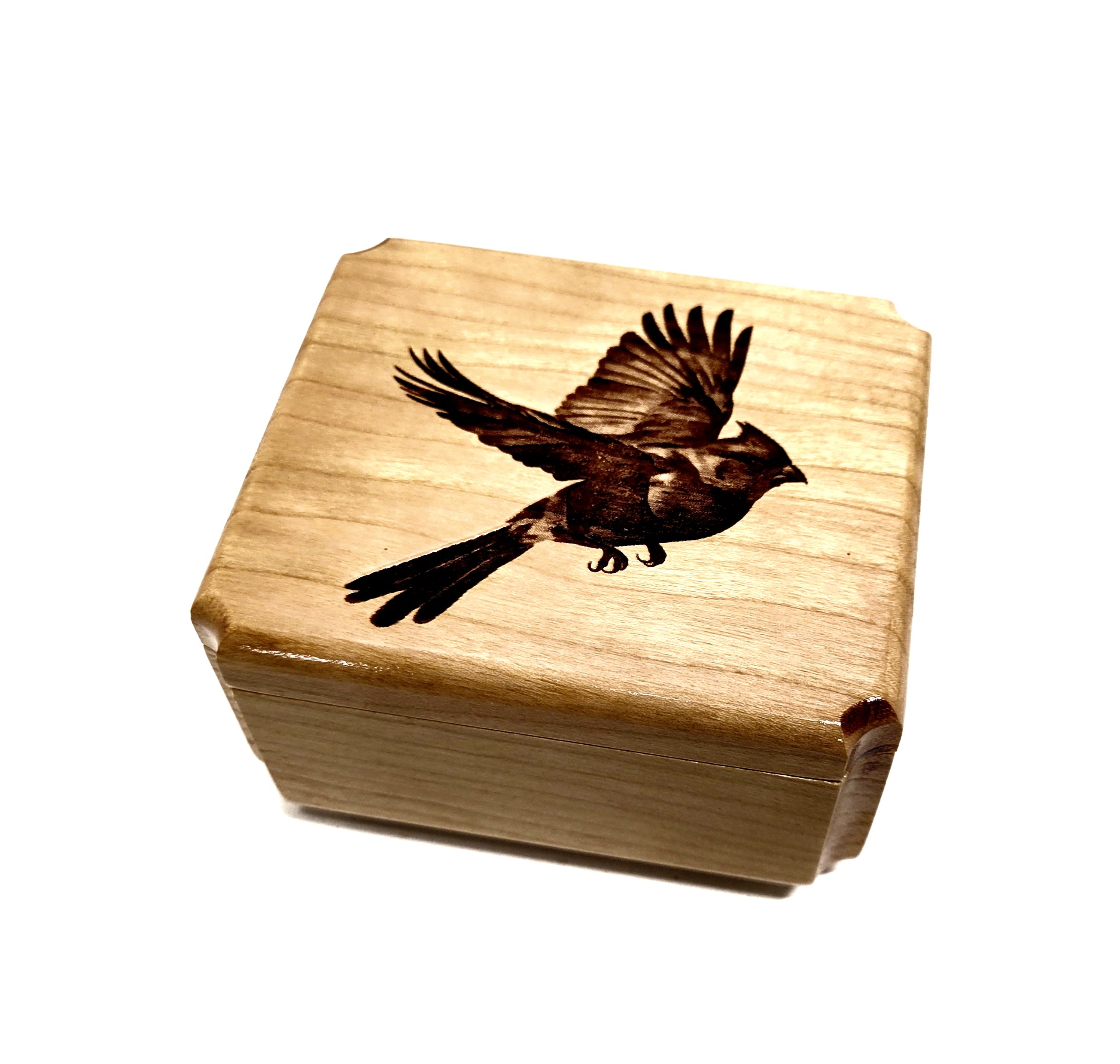 Cardinal Bird Ring Box Add Text, Personalized Handmade Custom Laser Engraved Wooden Ring Box