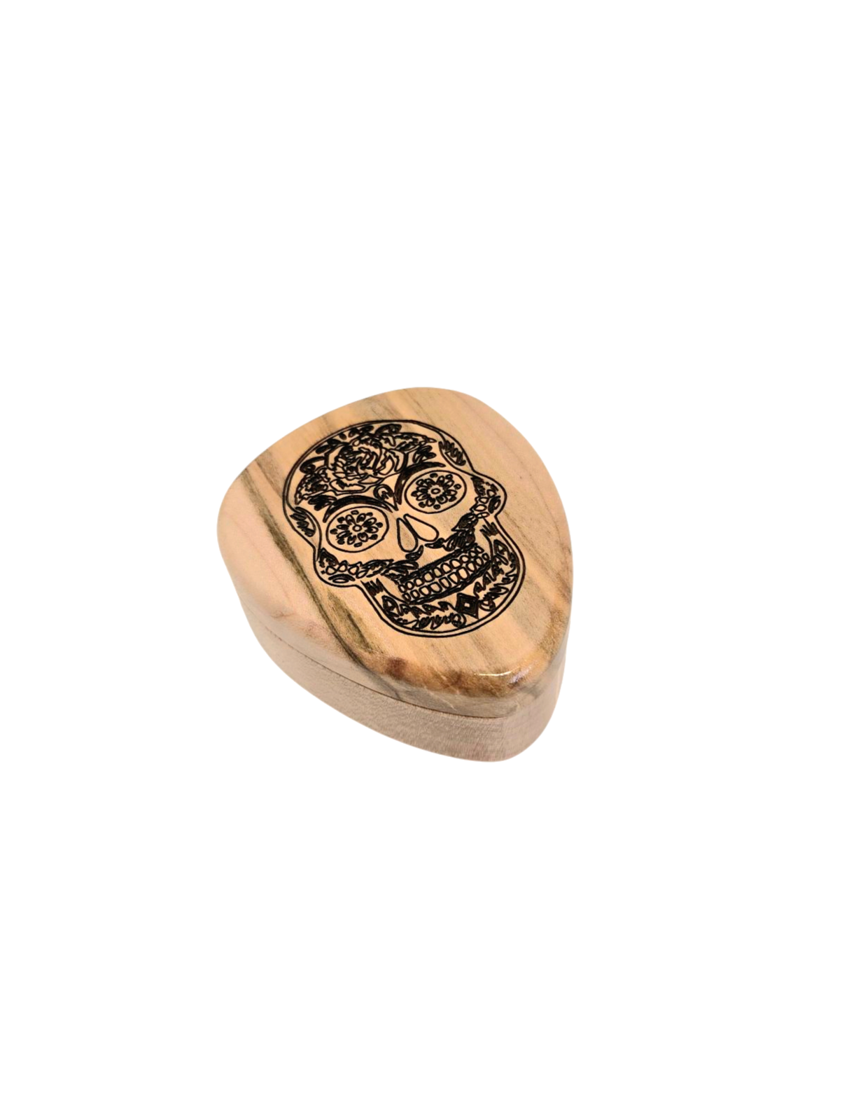 Sugar Skull Design Pick Box Add Text, Custom Laser Engraved Handmade Pick Box