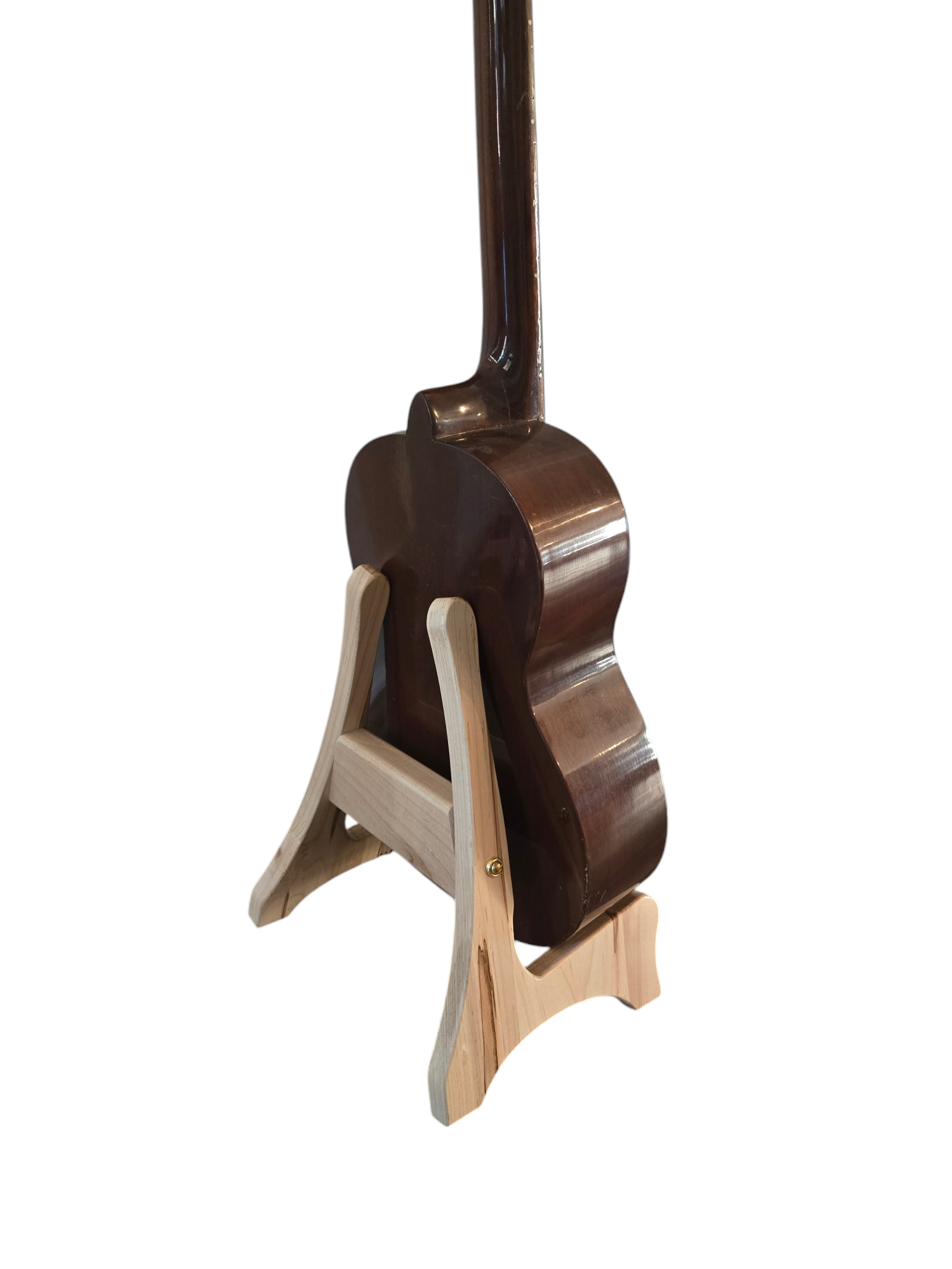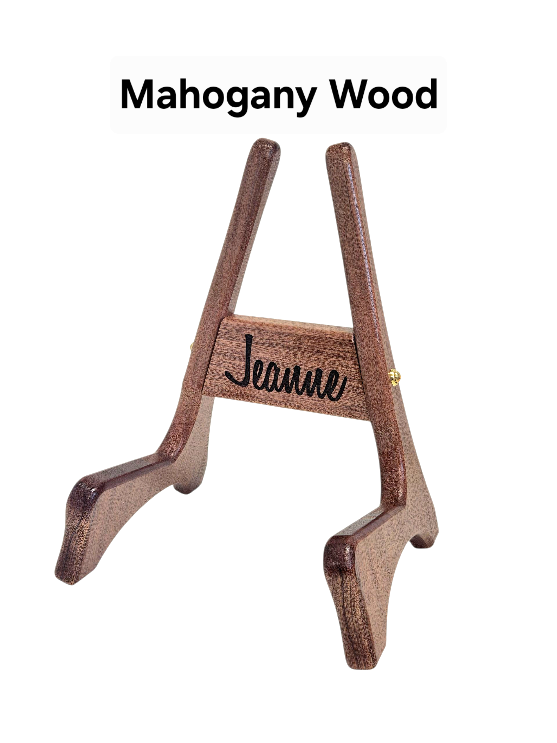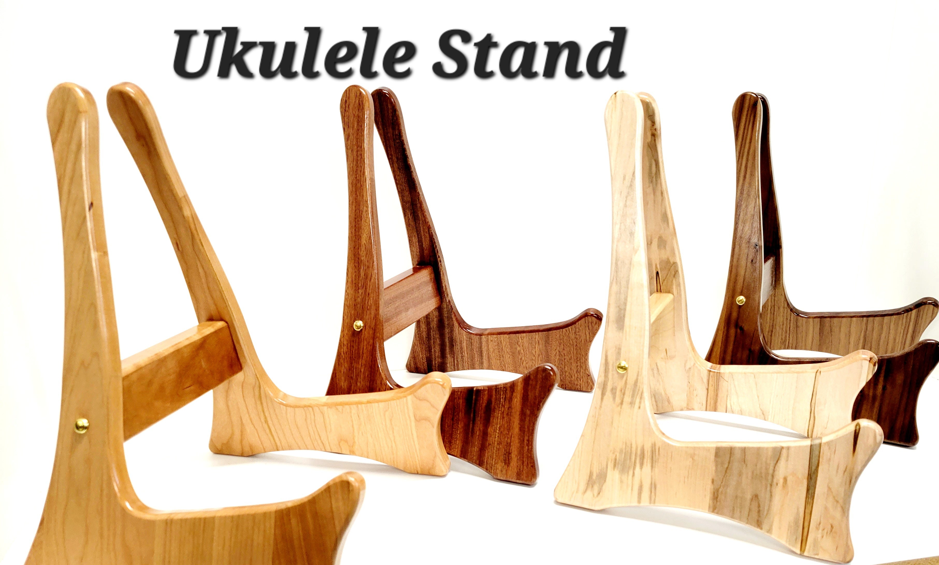 Beautiful Wood Ukelele Stand, hand built from premium hardwood! Choose to order your stand with no engraving, or add a name or initials to the stand. Text is engraved on the center piece of the stand.