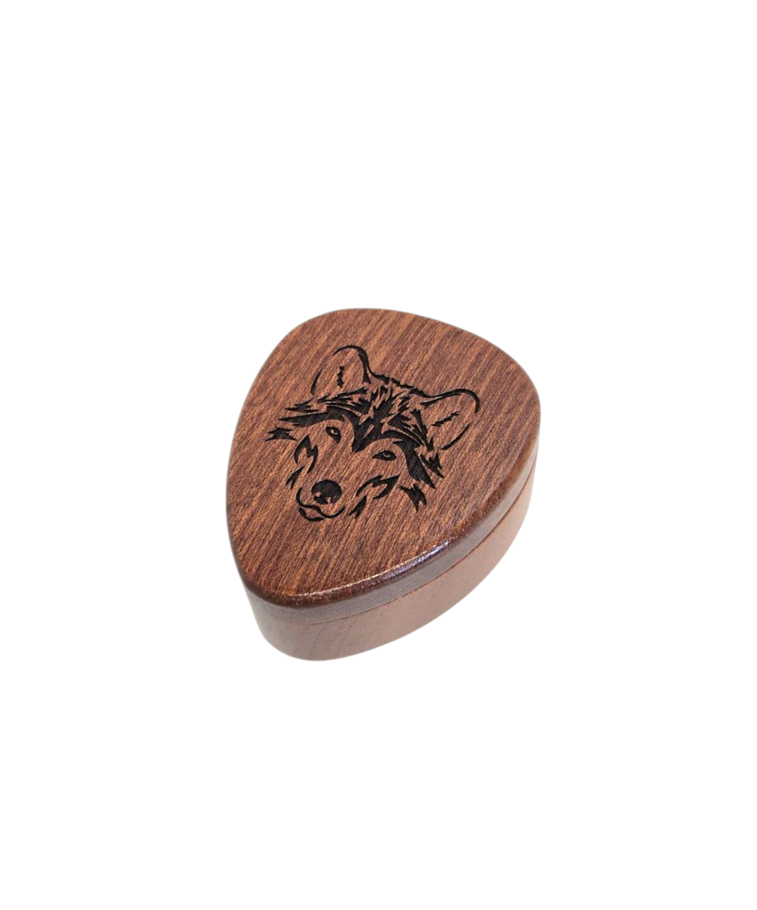 Wolf Design Pick Box Add Text, Custom Laser Engraved Handmade Pick Box