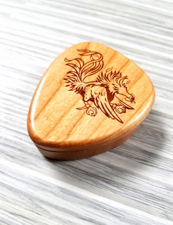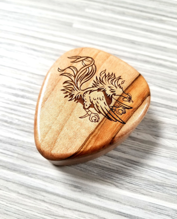 All of our pick boxes are made from premium hardwood, no plywood or pressboard! We do not stain or paint any of our boxes but apply several finishing coats of lacquer to show off the natural wood grain.