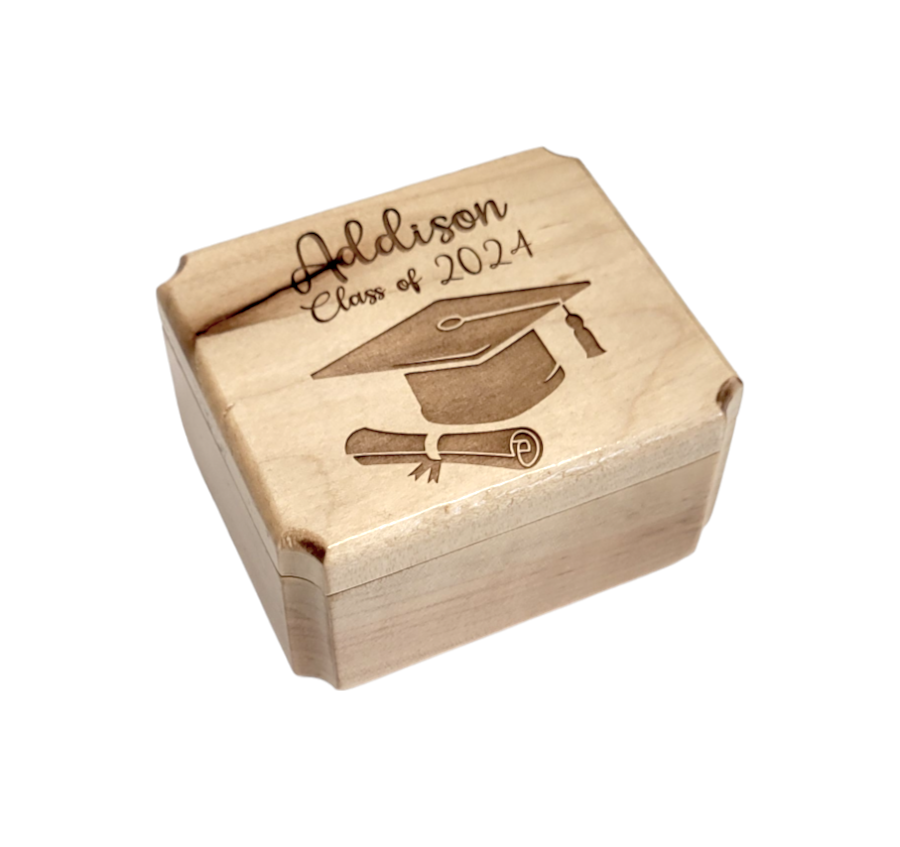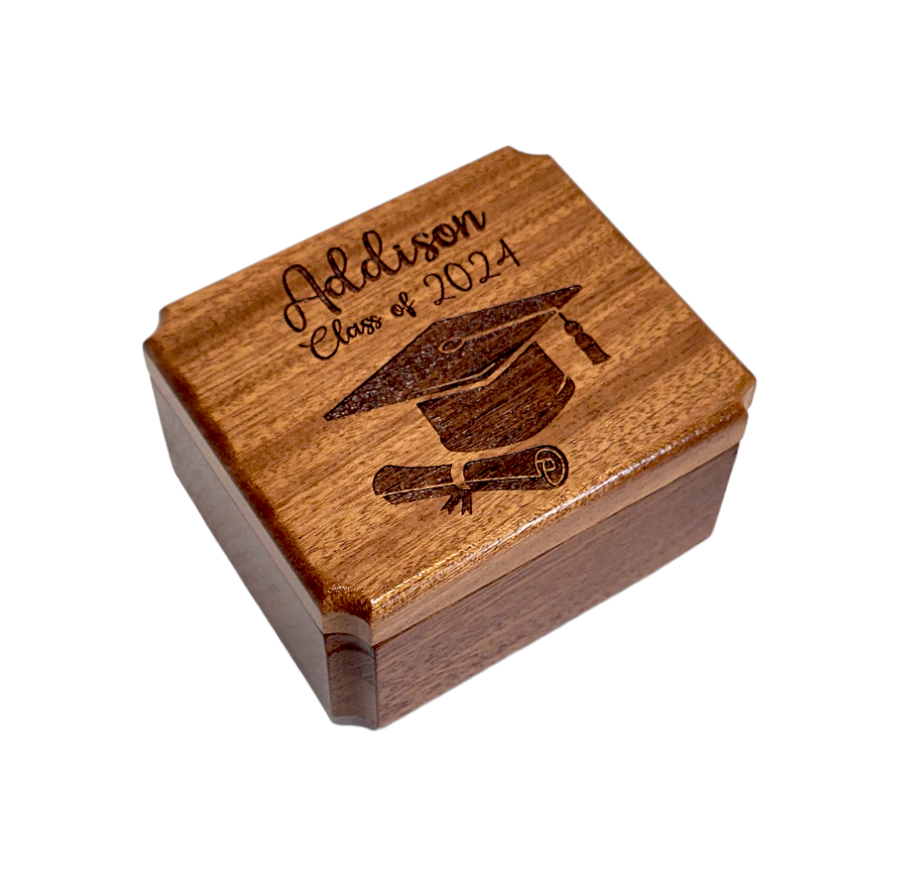 Graduation Ring Box Add Text, Personalized Handmade Custom Laser Engraved Wooden Ring Box