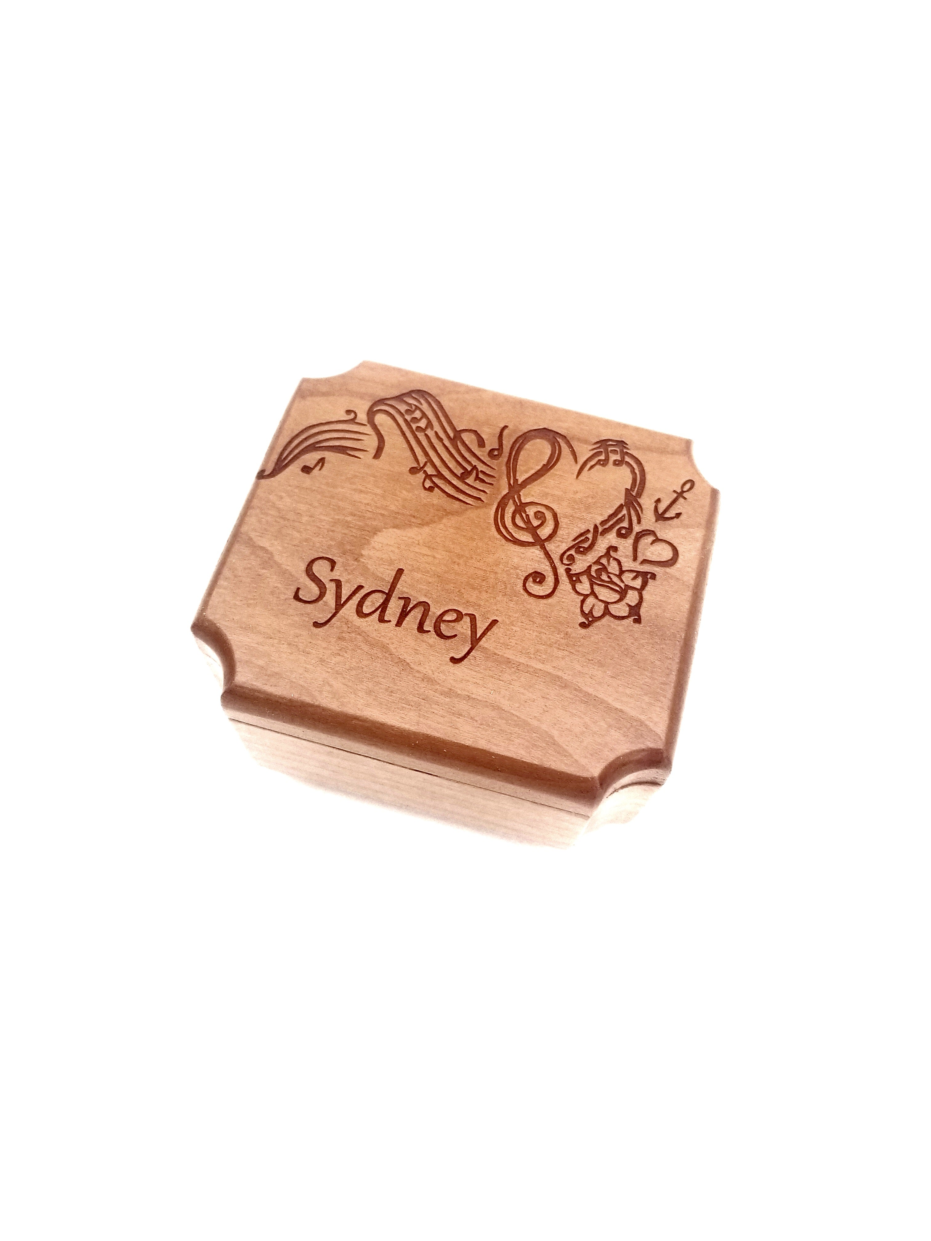 Music Design Ring Box Add Text, Personalized Handmade Custom Laser Engraved Wooden Ring Box